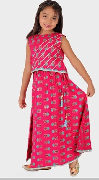 Regarding this product, Elegant Sanganeri Prints: The item includes a Rayon Fabric Choli and Lehnga with no sleeves printed with Sanganeri. The Choli is planned with dynamic tones, displaying an exquisite and smooth ethnic search for child young ladies. Printed Choli and Lehnga: A printed Choli and a Lehnga in the same print are part of the set, giving the ensemble a fashionable and traditional feel. The Lehnga is planned with a versatile belt for additional solace and simplicity of development. Delicate and Agreeable: The texture utilized, Rayon, guarantees that the Choli and Lehnga are delicate and agreeable for your child young lady to wear. Because of this, it is ideal for wearing all day during Indian celebrations and festivals. Accessible in Various Sizes: There are seven different sizes of the product, ranging from 6 months to 6 years. Your little girl will be able to wear the outfit as she gets older because it is made to fit perfectly for all age groups.  |